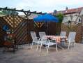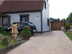 | Die Ferienwohnung befindet sich im Erdgeschoss einer Doppelhaushälfte. Sie betreten einen Vorraum zum Eingang, in dem sich eine Eckbank, Tisch und Stühle befinden. Dort kann man in der wärmeren Jahreszeit Essen, auch die Freizeit verbringen. Im Garten ist für Sitzmöglichkeit gesorgt, auch kann gegrillt werden. Der Grill ist vorhanden. Im Grundstück steht den Gästen ein eigener Parkplatz zur Verfügung. |