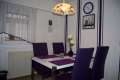 | Im Haus selbst befindet sich eine komplett eingerichtete Wohnküche, wo es bis zum kleinsten Detail an nichts fehlt. Ein Kinderstuhl ist vorhanden. Die Wohnstube ist mit einer modernen Schrankwand, modernen Fernseher, Sofa, (auch zum Schlafen), 2 Sessel und 1 Tisch eingerichtet. Die Schlafstube hat 2 Betten, welche bei Bedarf auseinander gestellt werden können; einen grossen Kleiderschrank mit Bügel, so wie 2 Nachttische mit Lampen. Das Bad ist mit Badewanne, Dusche und Waschbecken ausgestattet. Die Toilette ist extra, befindet sich nicht im Bad. Bettwäsche, Wisch- und Handtücher werden gestellt. |
